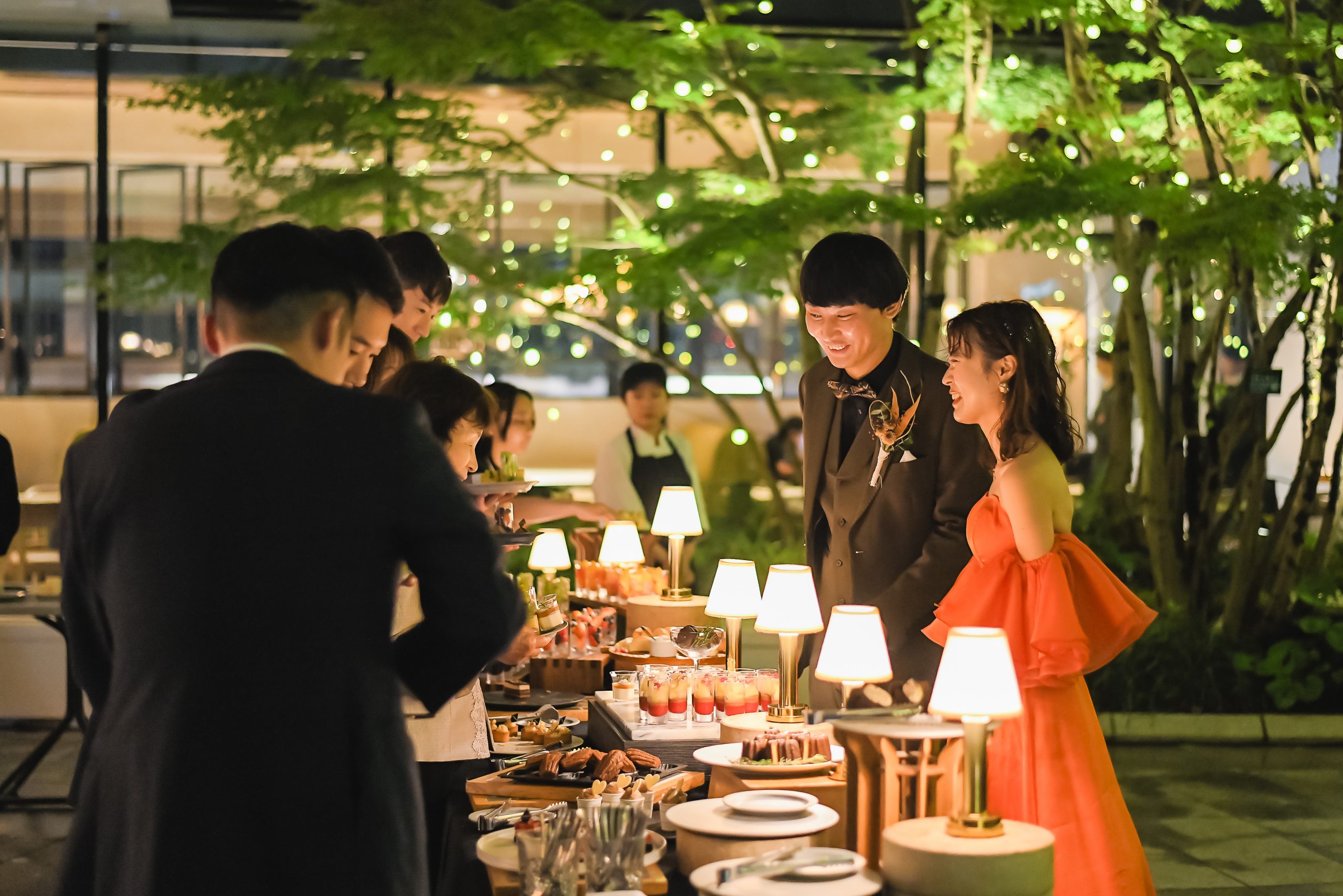 当日はナイトウエディングで幻想的な空間の中での挙式や、パーティ中にゲストの皆様が音楽を楽しまれていたのが印象的でした。